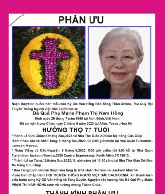 Thân Mẫu Ký giả Vân Hằng Qua Đời Tại Allen, Texas, Hoa Kỳ. Hưởng Thọ 77 Tuổi